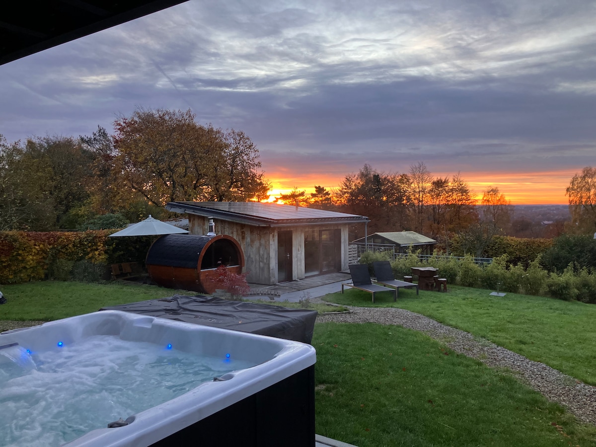 En un lugar tranquilo en el corazón de las Ardenas, puedes alojarte con nosotros en silencio y lujo. Nuestras casas de campo están construidas de forma sostenible con un acabado de alta calidad con materiales naturales. Nos gustaría darte la bienvenida a nuestros alojamientos que tienen una cama tamaño king, ducha a ras de suelo, cocina equipada (lavavajillas, máquina Nespresso), aire acondicionado y estufa de leña. Disfruta de tu propio bienestar con nuestro sauna al aire libre y jacuzzi, completamente privado con hermosas vistas sobre las colinas de las Ardenas.