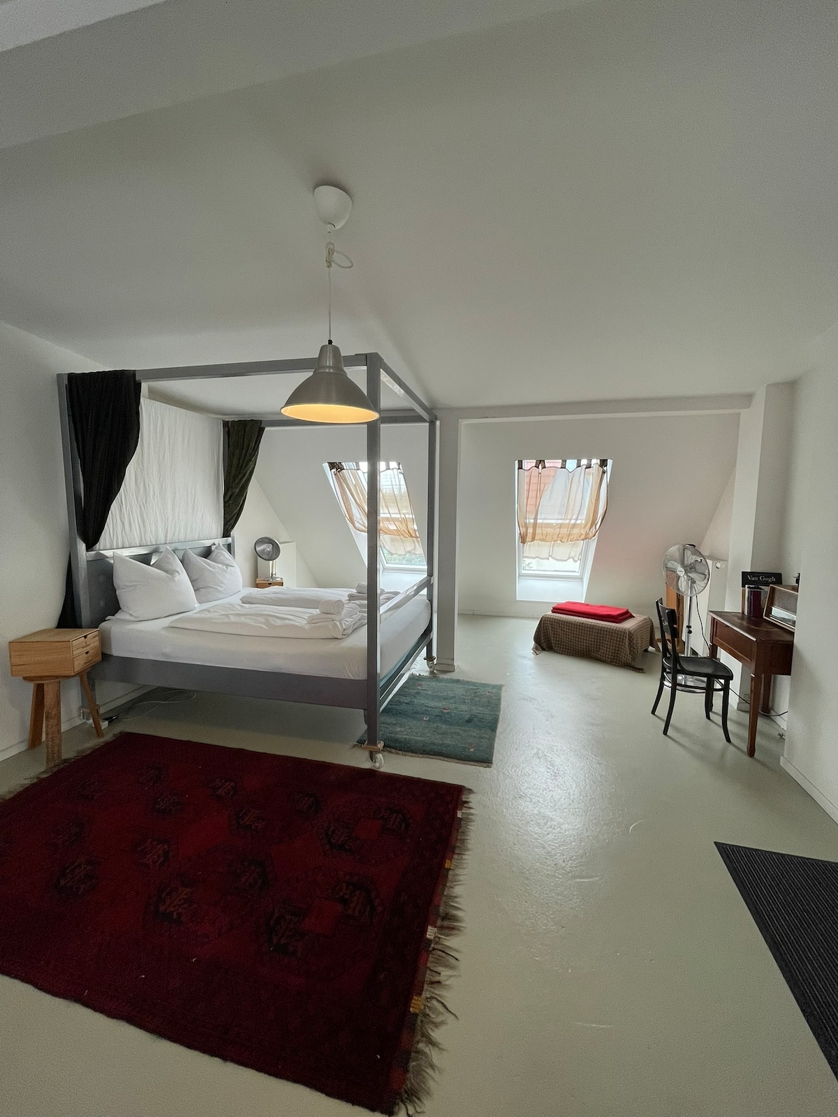 This tranquil penthouse offers the best of Berlin living. Steps from the canal, Spree River, parks, supermarkets, restaurants, and cafés, it’s a serene escape in a lively neighborhood. The spacious, light-filled living room and two private balconies provide perfect relaxing spaces. Despite its attractive location, the apartment is calm and quiet. No parties allowed.