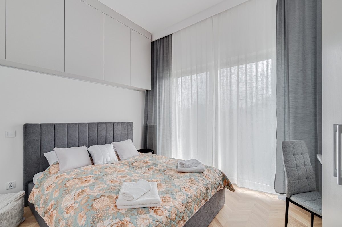 Apartamento moderno con vista al horizonte occidental de la ciudad. Un lugar único con una hermosa terraza en el último piso proporcionará vistas inolvidables. El apartamento consta de un salón con una cocina americana totalmente equipada, una habitación con un amplio armario, un baño y una terraza. Tienes todos los artículos necesarios: hervidor de agua, plancha, secadora, cápsulas de lavandería, café, té, especias básicas. El apartamento es perfecto para hacer turismo de fin de semana así como para estancias más largas.