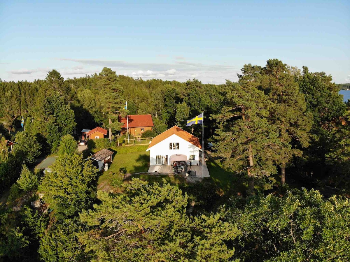 Un oasis encantador, paseos por el bosque o un paseo en barco en tu propio embarcadero y lugar para botes. La puesta de sol en la terraza es mágica todo el día. Casa de campo fresca de 60 m2 con todas las comodidades, cerca de Gotemburgo (60 minutos), pero también a 25 minutos de Overby/Torp. Se puede llegar a la acogedora Ljungskile a través de la carretera forestal. Plan abierto, mesa con espacio para 6. Cama de 180 cm en un dormitorio privado. La cocina totalmente equipada, baño con ducha y lavadora. En la casa de huéspedes hay 2 habitaciones separadas con una cama de 140 cm en cada una. Estacionamiento y carga de electricidad.