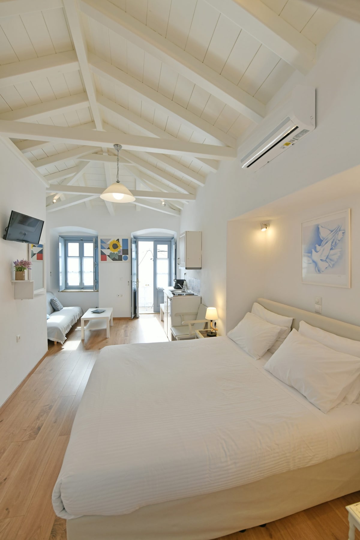The studio is part of a bigger traditional old Stone house, fully renovated and with great view to the harbour. One reaches the houses in 10-15 minutes walk (and stairs) from the port depending on each person's pace. Hydra is amphitheatricaly built and there are a lot of cobble stone stairs around town and leading up to the house so ...not for everyone! new mandatory government fee has been introduced: the “Climate Crisis Resilience Fee”, amountingto €8 per night for short-term accommodations