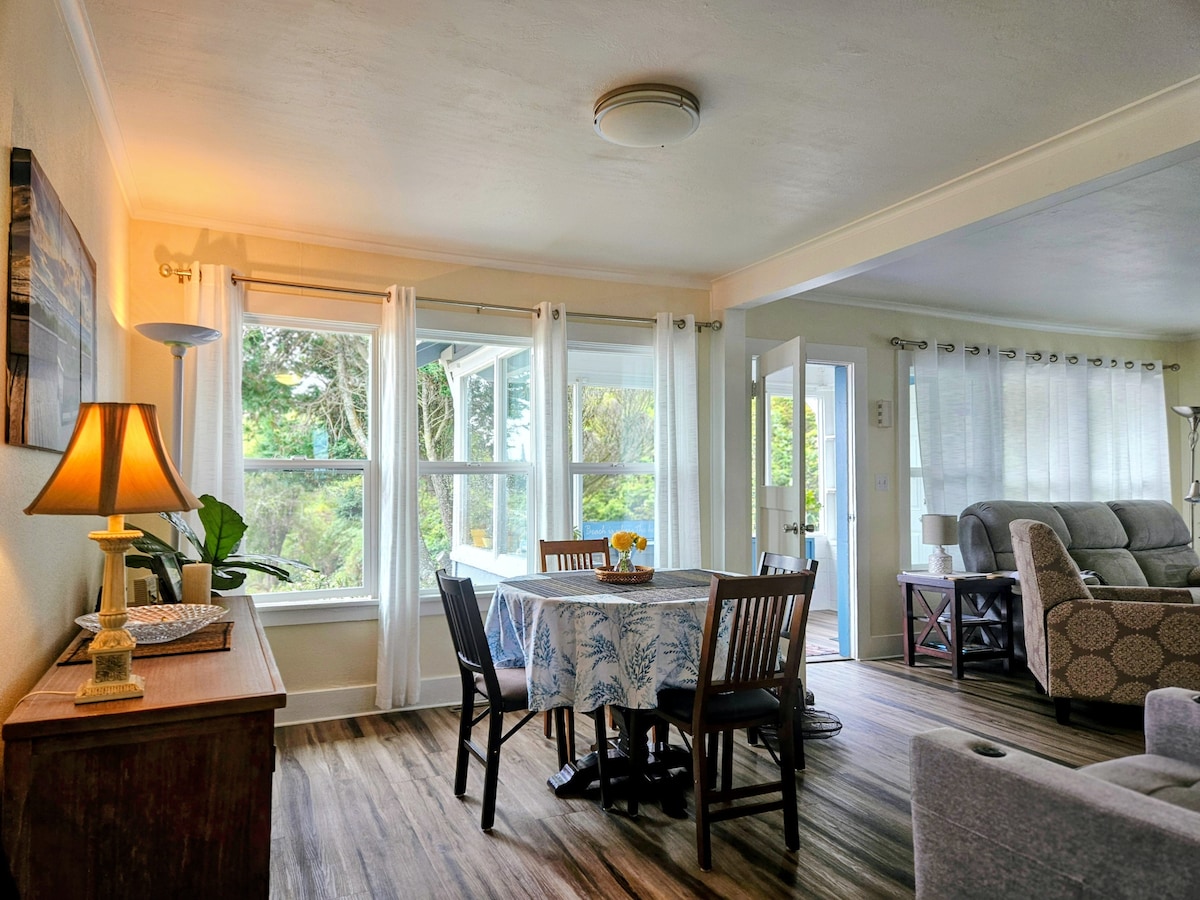 Acogedora casa de campo construida en la década de 1920 a un tiro de piedra del mar, renovada con comodidades modernas y decorada con muebles antiguos, la escapada perfecta para una pareja o una pequeña familia. Disfruta sumergiéndote en el jacuzzi de vapor en el jardín. En las noches frescas te sentirás cómodo con el edredón de plumas y el calor de la estufa Franklin. Las vistas al mar desde la sala de estar y las ventanas del dormitorio y el acceso a la playa están cerca, con algunas de las piscinas de marea más prístinas de Oregón justo enfrente de la cabaña.