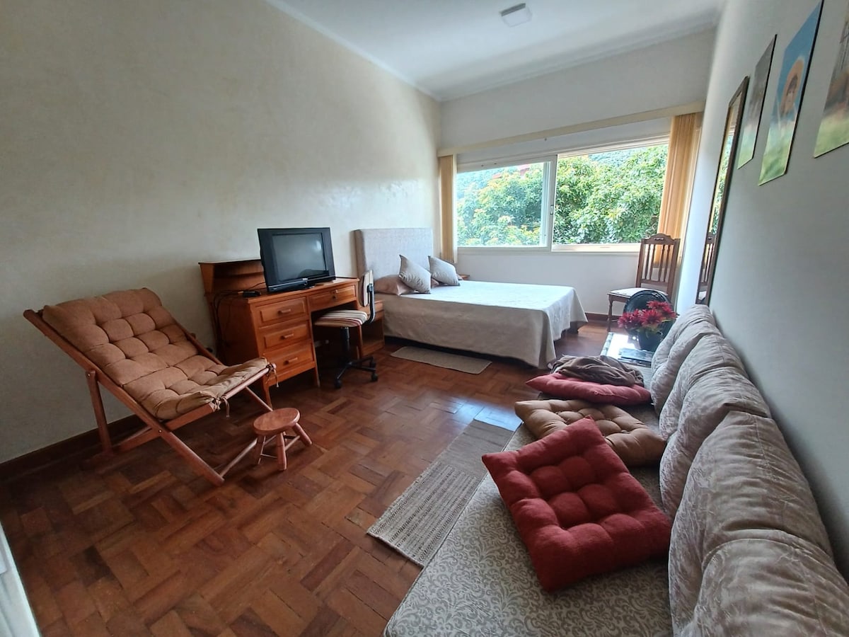 Aconchego e tranquilidade no centro de Serra Negra. Apartamento com 115m2, charmoso, de frente, com vista livre, no centro de Serra Negra/SP. Apto bem arejado, amplo, ambiente claro, tranquilo e confortável. Apto residencial localizado no 5º andar, prédio com elevador, seguro, iluminado em rua tranquila no centro, a 400 mts da rua principal. Wi-fi de alta velocidade em todo o Apto Ligações telefônicas gratuitas para todo Brasil TV 50" Full HD Mínimo de 2 diárias. Sejam muito bem-vindos(as)