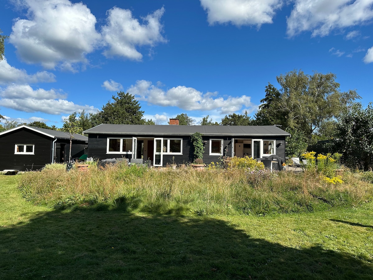 Casa de verano luminosa y llena de ambiente, con un enfoque en el buen ambiente y la atmósfera acogedora. Renovada en 2023. La casa de verano alberga una gran cocina-sala de estar, con grandes ventanales y amplias puertas de terraza hacia el gran jardín y la terraza de madera cubierta, respectivamente. El jardín está orientado al suroeste, por lo que se puede disfrutar del sol durante todo el día o se puede disfrutar de la terraza cubierta de caña durante un rato refrescante, con una bebida fría y un buen libro. 2 dormitorios con 3/4 camas, uno con acceso a la ducha exterior y al jardín. 1 baño pequeño