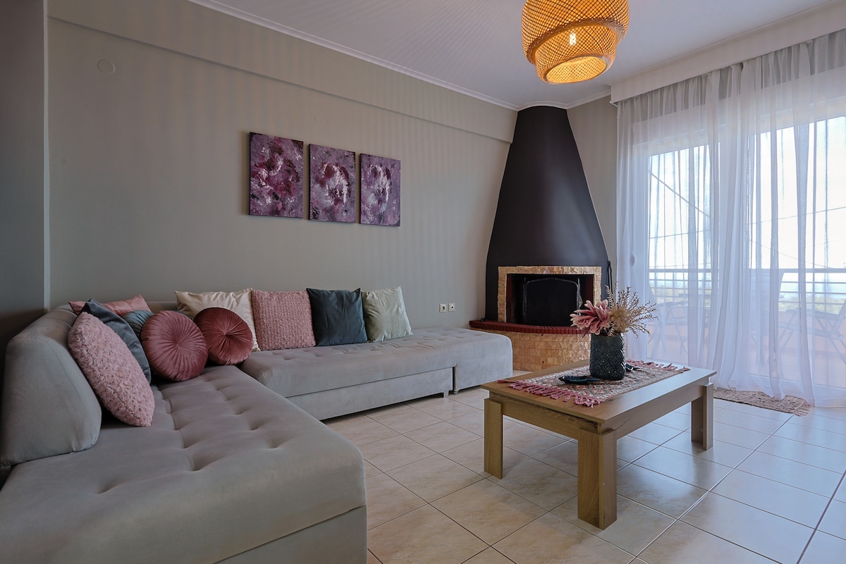 Moderno y soleado apartamento de 47 metros cuadrados en el centro de Leptokarya, a 10 minutos del mar y a 5 minutos de la estación. Ideal para familias o profesionales, con entrada independiente, terraza, televisores inteligentes, cocina totalmente equipada y baño con lavadora. Base ideal para el Olimpo, sitios arqueológicos y pueblos tradicionales.