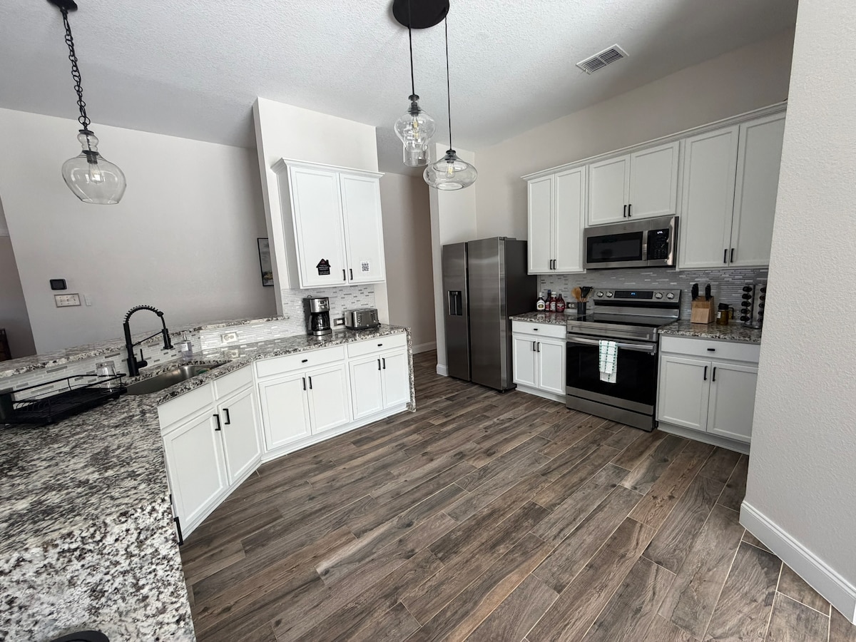 ¡Da la bienvenida a Lakeview House! ¡Relájate y relájate en este espacio tranquilo y elegante! Ven a divertirte con toda la familia (mascotas incluidas) o trae a tus amigos a este alojamiento totalmente actualizado. Esta propiedad de planta abierta es perfecta para los huéspedes a los que les gusta entretener, relajarse o necesitar un espacio de trabajo exclusivo. Las brillantes paredes blancas te dan la bienvenida mientras que los acabados modernos, la alfombra recién acolchada y las impresionantes vistas al lago hacen que tu estancia sea tan cómoda y acogedora. ¡Internet de alta velocidad, 3 televisores de pantalla plana con Netflix incluido!
