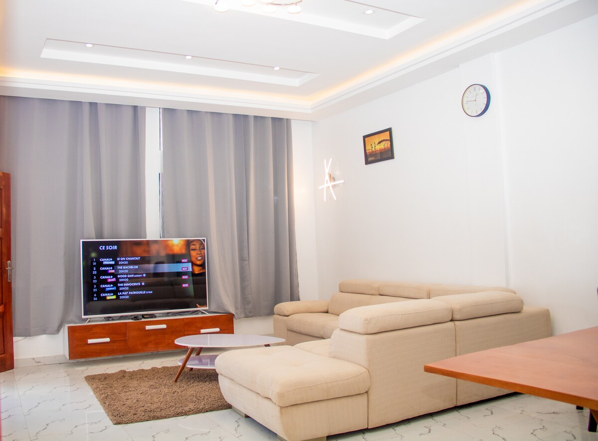 Bienvenido a este moderno y espacioso apartamento estudio en Cotonou, tu hogar perfecto lejos de casa en un vecindario tranquilo y seguro. Disfruta de una cocina totalmente equipada, una acogedora sala de estar con cómodos sofás y un televisor inteligente, una mesa de comedor y un dormitorio y baño privados. El espacio es luminoso, limpio y está cuidadosamente diseñado para relajarse o trabajar. Este hermoso apartamento está a poca distancia en coche del aeropuerto, está cerca de restaurantes de lujo en Haie vive y también cerca de supermercados y tiendas