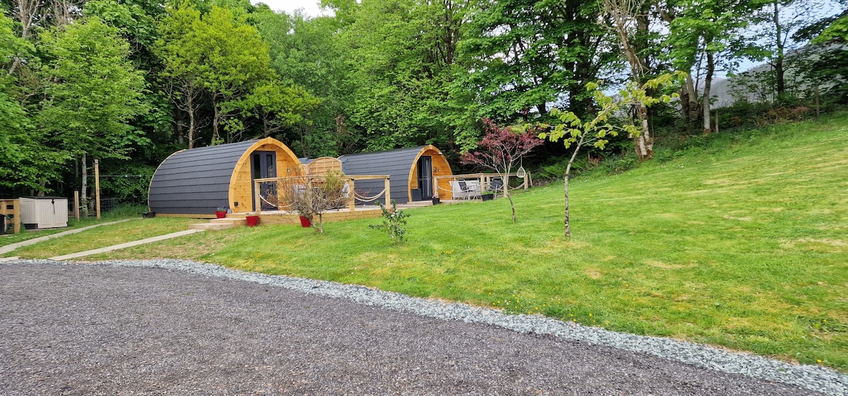 Aldercroft Pod es una cápsula de glamping de lujo situada en Inverinate, con vistas al lago Duich y a las 5 hermanas de Kintail. La cápsula está a 2,5 millas de Dornie y del castillo de Eilean Donan. Estamos a 13 millas del puente de Skye y la isla de Skye. Base ideal para caminar por las colinas en Kintail y Glenshiel. La cápsula se encuentra en nuestro espacio de jardín, a unos 20 metros de la casa, pero aún muy privada y con una mejor vista. Estamos ubicados justo al lado de la A87, que es la carretera principal (a veces concurrida) a la Isla de Skye.