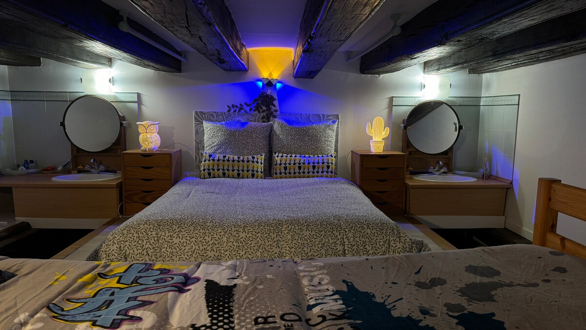 Loft muy bien decorado, ideal para una familia , que se encuentra en un pequeño pueblo tranquilo y cerca de la ciudad. El alojamiento consta de 1 altillo (1,30 m bajo techo perfecto para los niños) con 3 camas y la sala de estar con una zona de dormitorio. La casa se encuentra a solo 8 minutos en coche de Puy du Fou. Estaremos encantados de recibirle con nuestro buen humor y sonrisas para hacerle descubrir el hermoso bosque de Vendée. Aparcamiento y wifi.