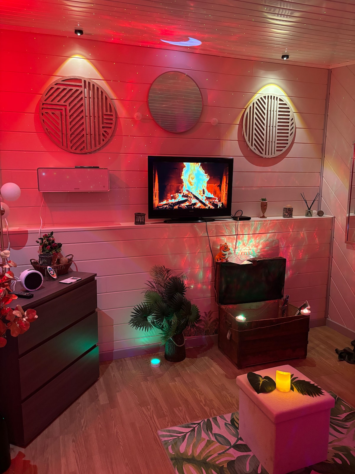 Plongez dans une ambiance romantique à "La Suite Spa et Cinéma". Située à seulement 20 minutes d'Angers, cette suite exclusive vous offre une expérience unique avec son spa privé, son cinéma et un décor intimiste conçu pour les amoureux. Détendez vous dans le bain massant à deux places, profitez d'un dîner romantique, et partagez des moments inoubliables dans le confort de votre propre salle de cinéma. Chaque détail a été soigneusement pensé pour créer une atmosphère de détente et de passion.