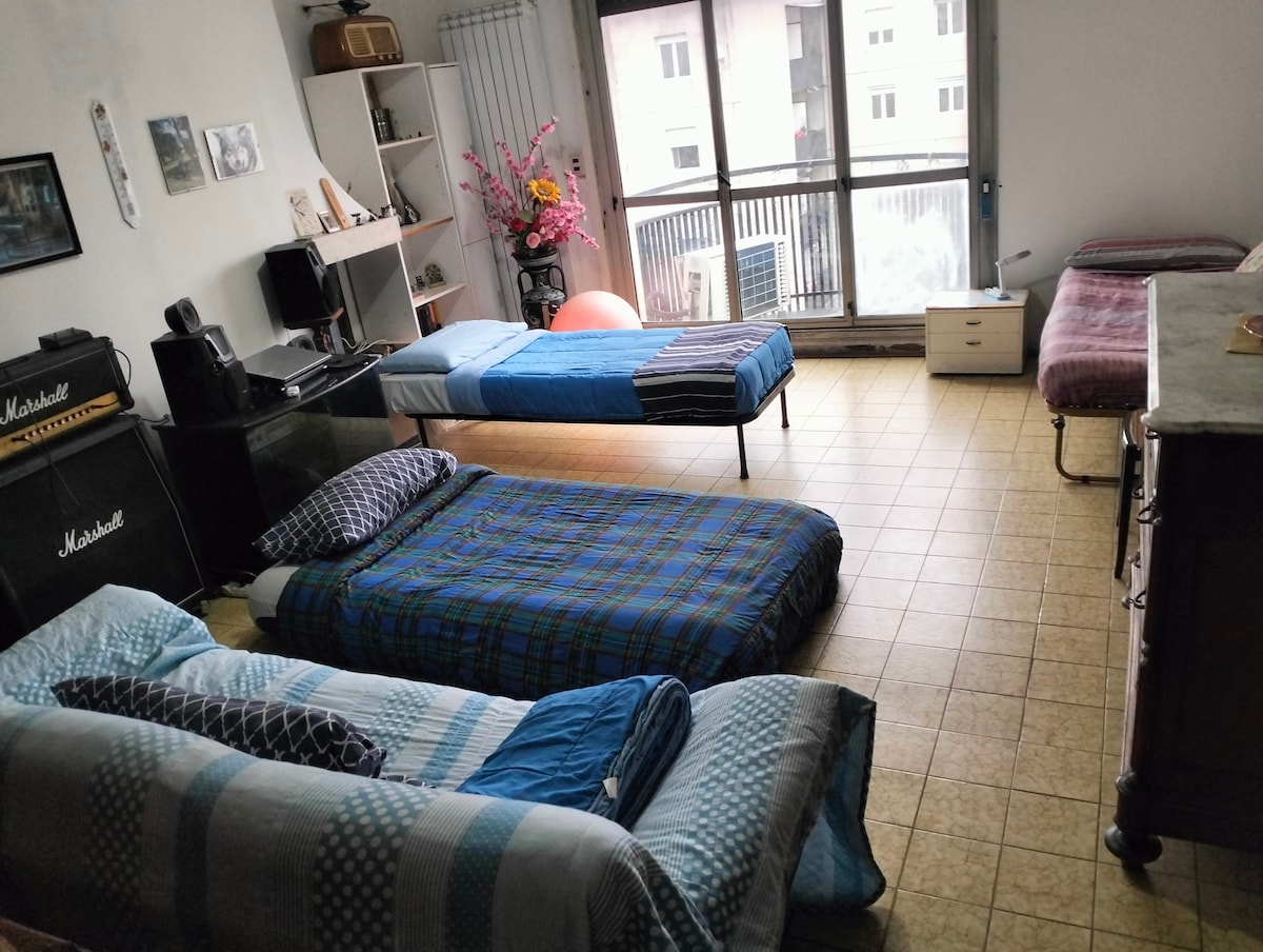 Alojamiento muy céntrico, cerca de todo, muy espacioso, en el primer piso de un edificio(no en la planta baja), a 5 minutos de la playa. - Amplia sala de estar con sofá cama y una cocina muy bien equipada y luminosa. -2 habitaciones con camas dobles -1 baño completo con servicios - Baño - Cochera cubierta gratuita para un auto. - Tiene capacidad para 6 personas. - Baño con cabina de ducha. A poca distancia a pie de tiendas, comestibles, magníficos bares, restaurantes, peluquerías.