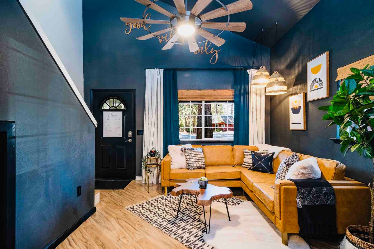 AIRE ACONDICIONADO, WIFI DE ALTA VELOCIDAD Y FÁCIL ACCESO. Compass^EAST es uno de los 4 bungalows en Compass Retreats. Escondido bajo los altos pinos con vistas ininterrumpidas de las puestas de sol de la montaña. Este espacio de inspiración bohemia es perfecto para una pareja, una familia pequeña o viajeros en solitario que buscan un espacio cómodo para relajarse y descansar después de un día de aventura. Base de operaciones perfecta para explorar Pinecrest Lake, Dodge Ridge Ski Resort, parques estatales, múltiples lagos, ríos e innumerables rutas de senderismo en la zona.