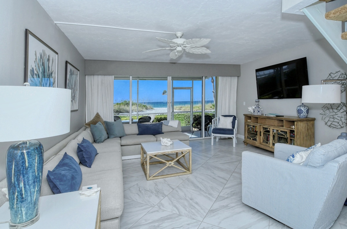 Felicidad frente a la playa: ¡no hay calles que cruzar, a solo unos pasos de la arena! Disfruta de impresionantes vistas al golfo y al atardecer desde tu balcón privado en este espacioso condominio recientemente renovado. Con un baño completamente nuevo y pisos nuevos en todas partes, esta unidad del cuarto piso (con acceso en ascensor) es el refugio perfecto para tu escapada Longboat Key. El apartamento tiene capacidad para 6 huéspedes. Tómate un café por la mañana o observa delfines e impresionantes puestas de sol desde el balcón con vista de 180° al Golfo. Ascensor.