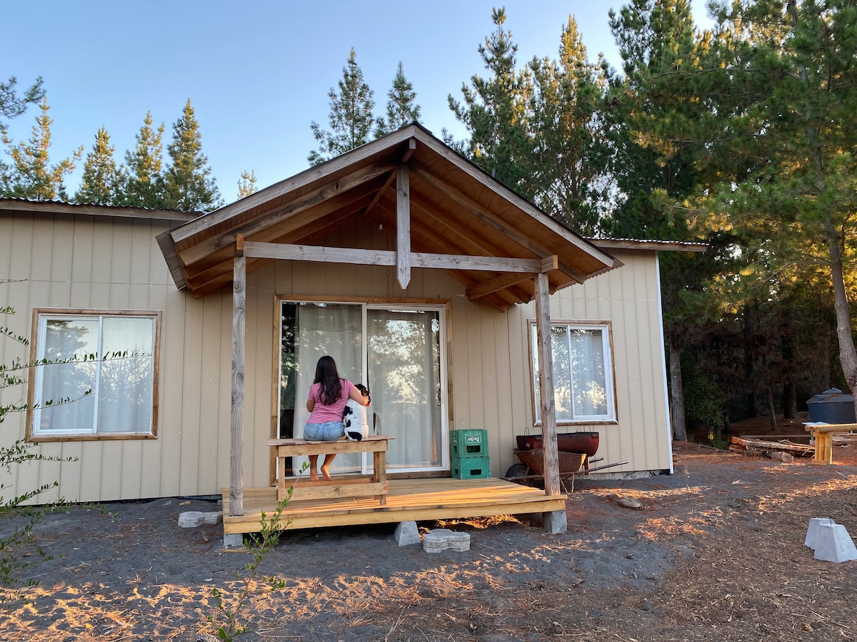 Les ofrezco un espacio de 2500 mtr2 de áreas verdes, espacio para barbacoa y un riachuelo apto para refrescarse. El espacio es solo para usted, no se comparte con otros huéspedes o con más cabañas. La casa es de 50mtr2, equipada con todo lo necesario para una estadía comoda. Se ubica a 300 mtrs de autopista 5 sur, camino a la Aguada con excelente acceso pavimentado. Las cataratas del los Saltos del Laja se encuentran a 2 minutos.