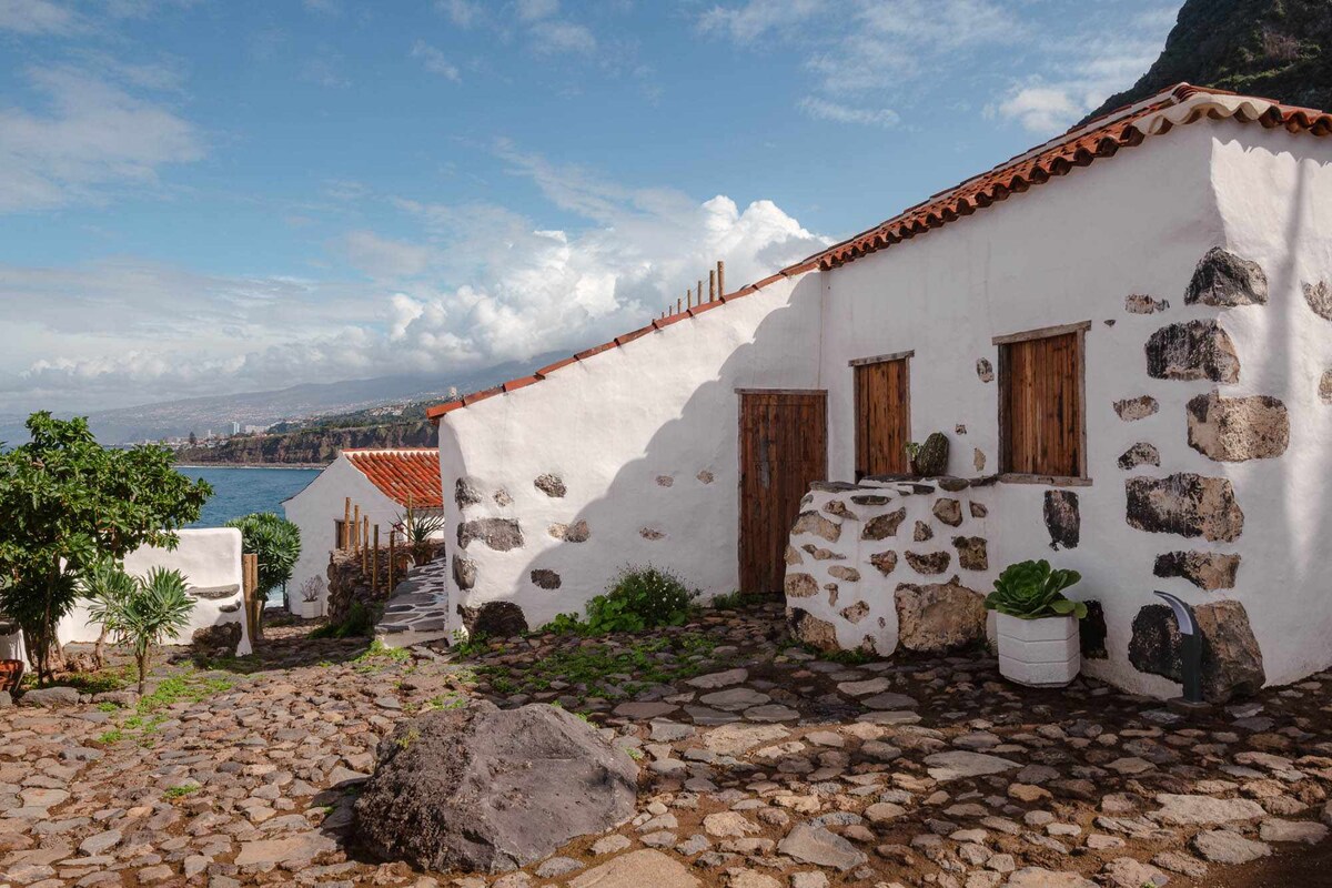 Esta casa está situada a 70 metros sobre el mar en un acantilado rocoso muy cerca de la ruta de senderismo costera. Ofrece una experiencia de naturaleza impresionante en uno de los tramos de costa más bellos de Tenerife. En las inmediaciones se encuentra el Puerto de la Cruz y el famoso Loro Parque. El popular pueblo de Toscal está a 10 minutos a pie y ofrece tiendas y buenos restaurantes. Báñese en la piscina y disfrute de las puestas de sol. La casa sólo es accesible por escaleras.