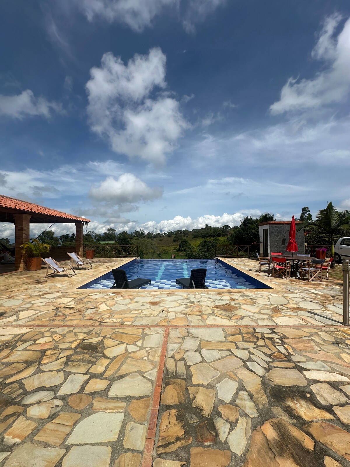 Disfruta del encantador entorno de este romántico lugar en la naturaleza. Mi granja suena como un refugio encantador, mezclando el encanto rústico con los lujos modernos. El jacuzzi y la bañera de hidromasaje ofrecen relajación en medio de la belleza de la naturaleza, mientras que el espacio verde ofrece un telón de fondo tranquilo para la paz. Estar cerca de Panachi y Mercado Campesino agrega comodidad y la oportunidad de explorar la cultura y la cocina locales. Parece una escapada idílica, que ofrece a los huéspedes una experiencia inolvidable y adorable en el campo.