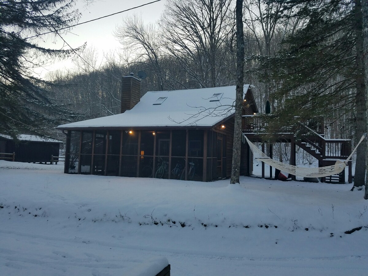 ¡Cabaña frente al mar ubicada entre el río Greenbrier y el sendero del río Greenbrier! VISTAS INCREÍBLES, entorno arbolado tranquilo, ambiente rústico boho, comodidades modernas. Excelente ubicación para practicar kayak, pesca, ciclismo, senderismo, relajarse y ver todo lo que la pintoresca ciudad de Lewisburg (a 15 minutos en coche) tiene que ofrecer, incluidas tiendas locales, galerías, restaurantes, destilería y Lost World Cavern. ¡Excursión de un día a Snowshoe, The Greenbrier o New River Gorge! Deja atrás la carrera de ratas y adéntrate en la naturaleza.