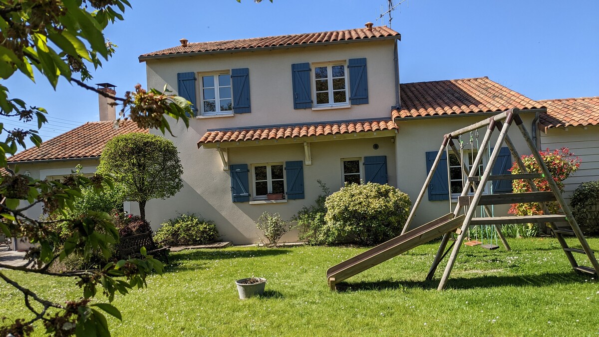 De 1 a 14 personas. Casa muy agradable, con piscina, terraza con zona de comedor y gran plancha, ideal para grupos de amigos o familias. Gran prado para juegos de pelota, cometa, o cualquier otro. Jardín arbolado con hamacas, tobogán, columpios y cama elástica. Situada en un pueblo, a 45 minutos del Futuroscope y de los castillos del Loira, con 5 habitaciones para 2 a 5 personas, se encuentra en un entorno tranquilo. Exclusivamente para no fumadores y sin mascotas. Practico un poco la Lengua de Señas Francesa.