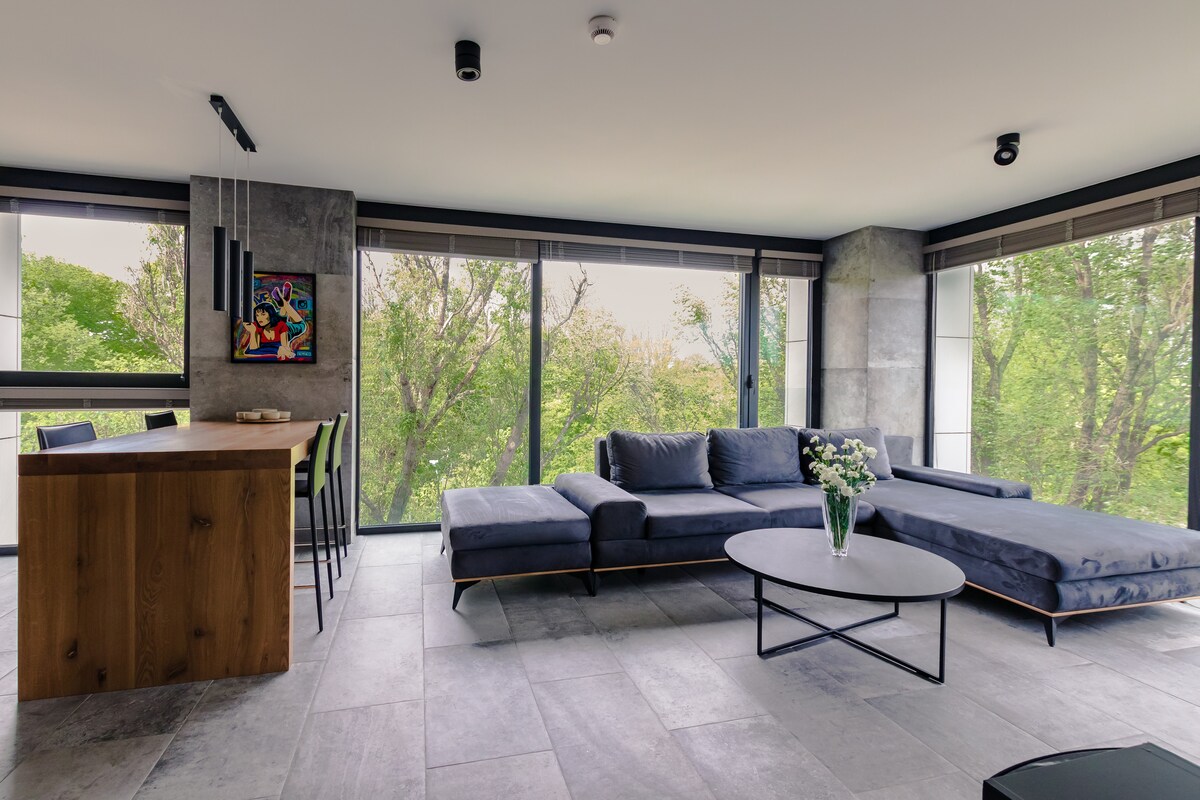 Apartamento acristalado muy cómodo, situado en las copas de los árboles con vistas al Jardín Saski y al Centro de Encuentro de Culturas, que es el lugar de muchos eventos culturales en Lublin. El edificio de apartamentos se puso en servicio en otoño de 2020. Se considera el edificio residencial más prestigioso de Lublin. Los huéspedes tienen acceso gratuito a: plaza de aparcamiento en el aparcamiento subterráneo, gimnasio, zona de SPA, sauna, piscina y jacuzzi.