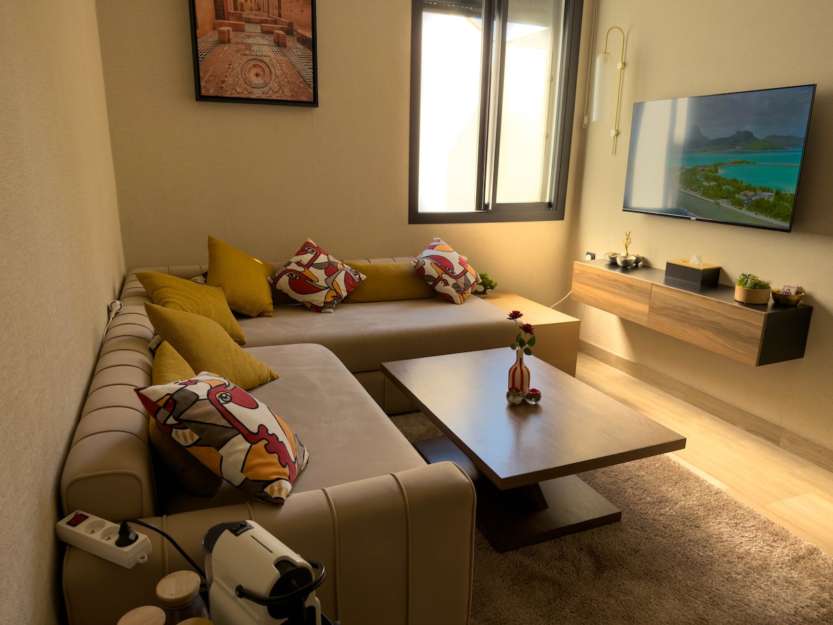 Un flechazo Disfrute de su estancia en este tranquilo apartamento limpio y cómodo ,ideal para viajes de negocios y visitas turísticas ,perfecto para parejas. Situada en el corazón de Casablanca ,todo está al alcance de la mano, y la estación de tranvía está a solo 1 minuto a pie. El apartamento tiene un dormitorio acogedor, un baño impecable, una cocina totalmente equipada y un luminoso salón equipado con una gran pantalla de Tv y dos terrazas balcones.