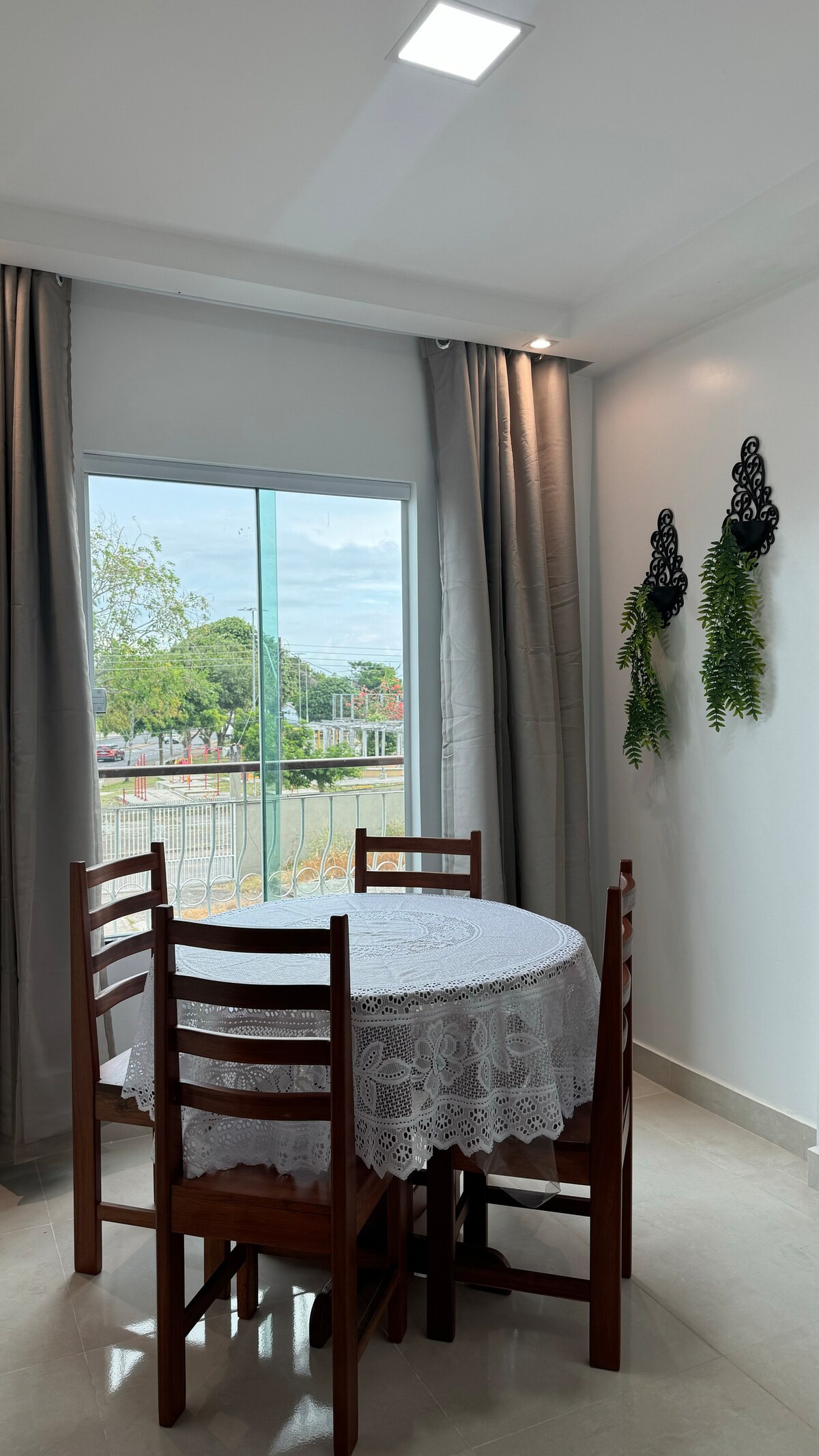 Bienvenido a nuestro acogedor apartamento ubicado en el barrio de Santa Rita, uno de los más tradicionales de Macapá. 🛏️ 1 dormitorio: Aire acondicionado de 12 000 BTU 1 cama tamaño queen + 1 cama doble (en la misma habitación, con capacidad para 4 personas) Armario con espejo Televisión de 50pulgadas Cortina para ventana 🏡 Sala de estar y cocina: Sofá cómodo Mesa con 4 sillas Estufa y refrigerador sin escarcha Utensilios de cocina