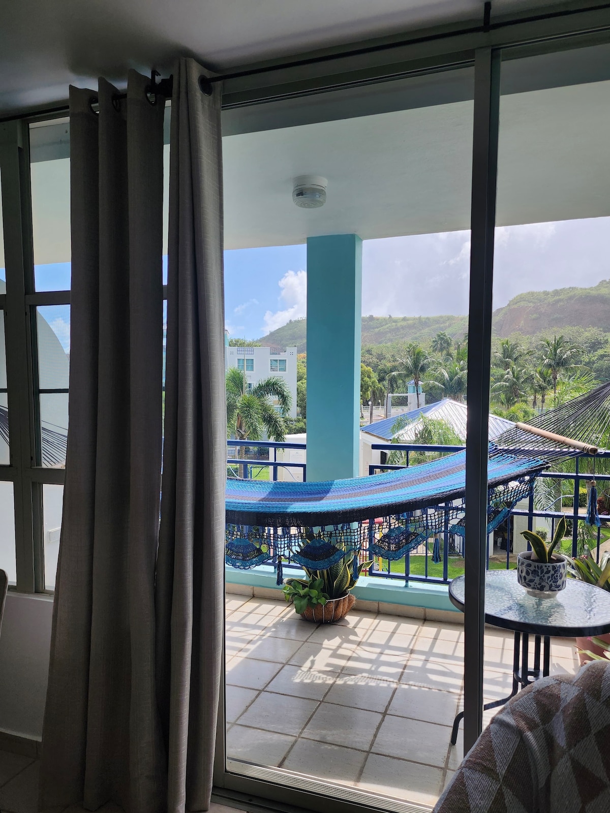 Relax at this peaceful place to stay. Terraza del Sol is a beautiful penthouse! It's got 2 rooms, 1 bathroom, and killer ocean views. You can see Vieques and Culebra from here, and we're super close to Marina Safe Harbor Puerto del Rey and just a quick 10-minute drive from the Ferry. This place is a special mix of ocean and mountain views, perfect for chilling out and enjoying beautiful sunrises or catching an epic moonrise with the soothing sound of the coqui in the background.