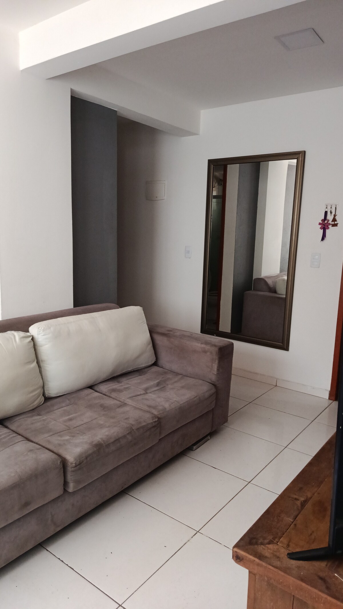 Encantador dormitorio y sala de estar en el segundo piso, con dos balcones: 1 en la habitación con vistas a la carretera Pontal y otro en la sala de estar con vista parcial al mar. Wifi rápido y un gran rincón para aquellos que necesitan trabajar. Ideal para parejas, familias o incluso para aquellos que vienen a trabajar. Incluye ropa de cama/trajes de baño. Si necesitas un cambio, solo tienes que organizarlo (servicio adicional). Ofrecemos sillas, sombrillas y toallas de playa. * Apartamento autónomo sin relación comercial o de negocios con el condominio.