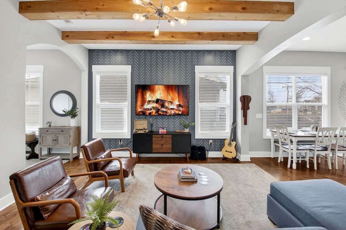 Alójate en esta casa totalmente renovada en East Nashville, uno de los vecindarios más populares y encantadores de la ciudad. Disfruta de un jacuzzi privado en el patio trasero, chimenea y parrilla, perfecto para relajarte después de explorar la ciudad. Camina hasta tiendas y restaurantes locales en The Shoppes on Fatherland o toma un Uber rápido hasta Broadway y el estadio Nissan. ¡Un refugio tranquilo a pocos minutos de lo mejor de Music City!