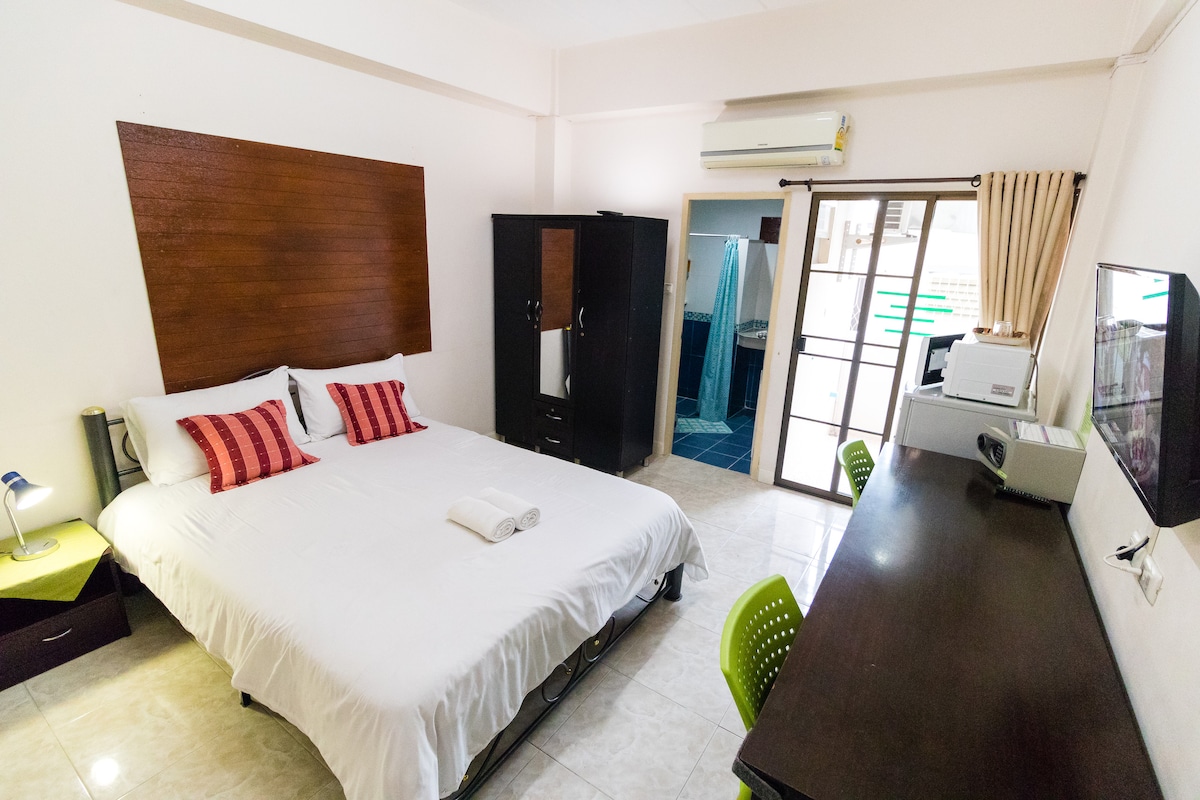 Maravilloso viaje a Chiang Mai – Inicio (Inicio del viajero) Alójate a solo unos pasos de la puerta de Tha Pae, los templos, los mercados nocturnos y los restaurantes locales. Esta acogedora habitación privada se encuentra en un hotel renovado convertido en casa de huéspedes, sencilla, limpia y tranquila. Ideal para personas que viajan solas o parejas. Disfruta de wifi rápido, jardín pequeño compartido y espacio en el vestíbulo. Siéntete como en casa en Chiang Mai con un anfitrión local que se preocupa por tu viaje ** Seven Eleven está en la esquina, Roti Pa Dae Michalin Guide lo recomienda encarecidamente,