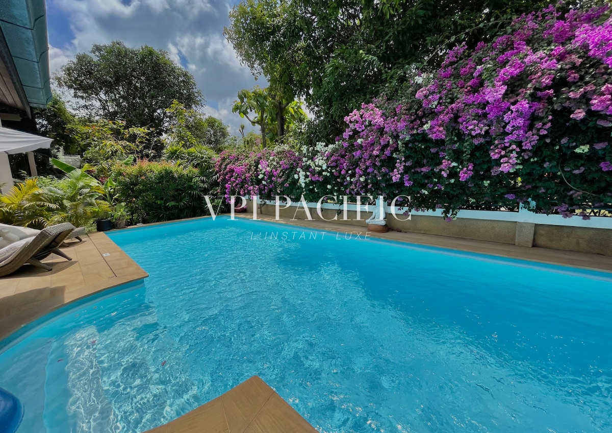 Ubicación, ubicación, ubicación. Perfecta para familias, parejas y amigos, esta hermosa villa única de 2 pisos, 2 dormitorios (ambos en suite) y 3 baños, literalmente tiene todos los servicios que podrías desear a pocos metros a pie, a solo 70 m de la encantadora playa de Meanam, muchos restaurantes, bares y tiendas en la calle peatonal de Meanam, justo detrás del templo budista chino. Recién renovado ahora incluye un nuevo jardín compartido con el templo, el mercado nocturno de Maenam abierto todos los días a 2 minutos a pie, de 3 a 10 p. m.