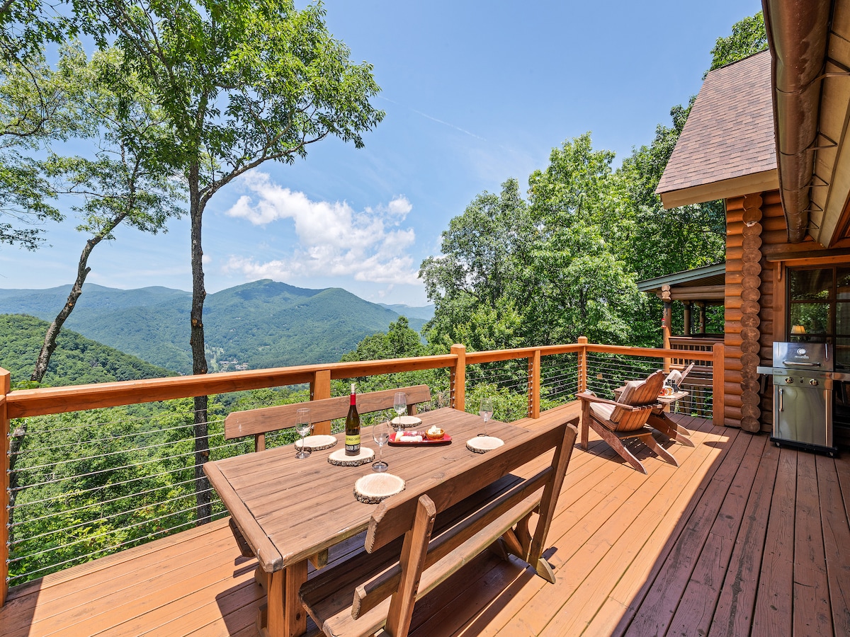 ¡Bienvenido al lujo rústico en su máxima expresión en Maggie Valley, Carolina del Norte! Esta cabaña de 2170 pies cuadrados, 3 dormitorios/ 3,5 baños construida en 2022 con vigas de madera recuperadas de 200 años de antigüedad, ofrece una escapada serena a la montaña para disfrutar de los sonidos del arroyo de 20 pies de ancho desde cada habitación. Disfruta de privacidad, cenas al aire libre, increíbles vistas a la terraza, la bañera de hidromasaje al aire libre y pasea hasta el fogón del arroyo con capacidad para 8 personas para asar S'mores. Esta casa tiene visitas frecuentes de alces y pavos mientras viajan al arroyo. Lo siento, no se admiten mascotas.