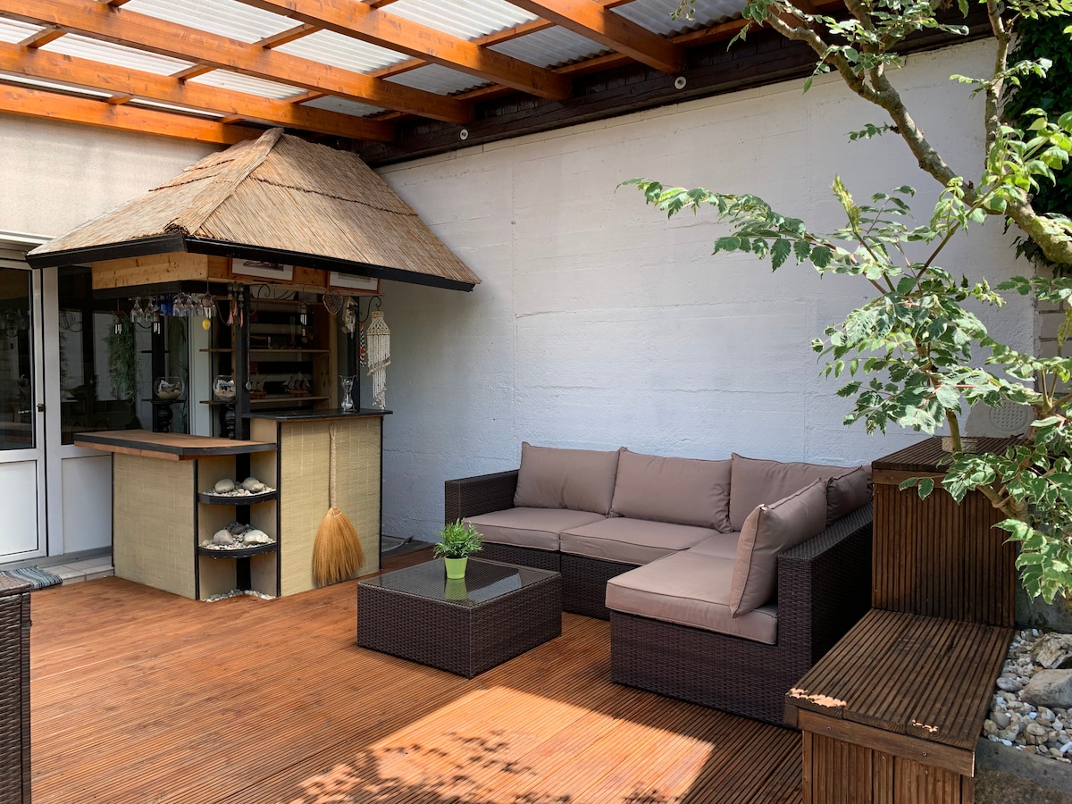 Esta es la mejor casa de Frankfurt con respecto al descanso, la relajación, la seguridad, el ocio, la hospitalidad y un bonito jardín con parrilla. * A 5 minutos a pie de la estación de tren. * Conexión rápida y directa a la feria comercial Messe, la estación principal y el centro de la ciudad * A 9 minutos del centro de exposiciones/Messe. * A 13 minutos de la estación principal (Hauptbahnhof, Hbf). * A 36 minutos del aeropuerto de Frankfurt Muy importante: Presiona siempre el botón negro “Mensaje al anfitrión”, ¡consulta a continuación ! ¡Nunca hagas clic en el botón rojo "Reservar"!