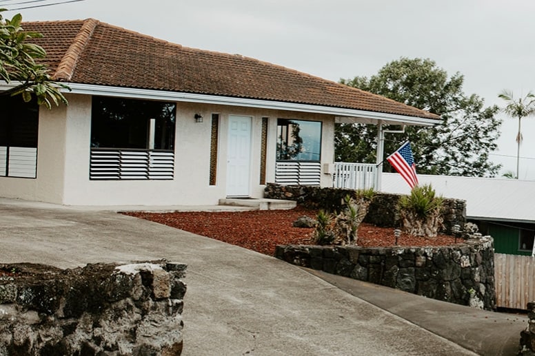 Introducing a private oasis of comfort and charm, our newly renovated tiny house. This simple retreat is a testament to minimalist luxury and offers a convenient escape near Kona International Airport and downtown Kailua Kona. The exterior of the tiny house is a harmonious blend of rustic charm and simple design, featuring a quaint porch, perfect for sipping your morning coffee or working on the computer while gazing at the pacific ocean.
