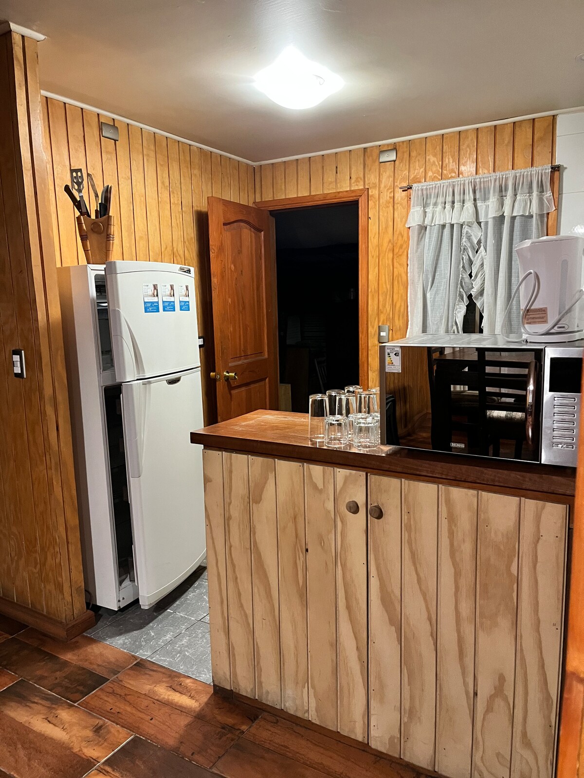 La cabaña "Cantos del Chucao" es el refugio ideal para disfrutar de la naturaleza, ubicada a 2 km de la entrada del Parque Nacional Conguillio, en Curacautín. Con capacidad para 6 personas, cuenta con 3 habitaciones, cocina equipada, Smart TV, WIFI y una terraza a orillas del río. Su tinaja privada (Precio: $35.000 que se pagan aparte el día que se quiera utilizar) y parrilla son perfectas para relajarse y compartir. Rodeada de flora y fauna nativa, ofrece acceso a aventuras y comodidad.