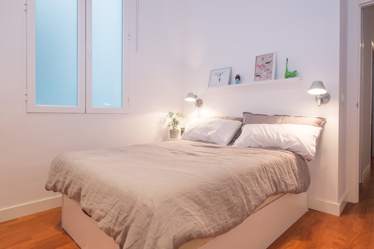 Luminoso apartamento de 70m. Dos baños completos y cocina totalmente equipada. Hay además una habitación para tu bebé/niñ@ hasta de 5 años con todo lo necesario. Vivienda muy fresca en verano. Contamos con ventiladores. Situado en el centro de Madrid, en el barrio de Malasaña. Al lado de plazas, restaurantes de moda en los que disfrutar de la capital. Muy bien comunicado, podrás ir caminando o en metro a cualquier punto turístico. La ubicación perfecta para disfrutar de la ciudad.