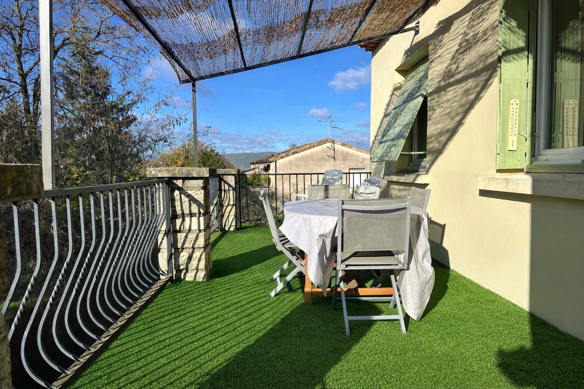 Relájese en este alojamiento tranquilo y con aire acondicionado. Apartamento totalmente independiente, disfrutará de una gran terraza con una bonita vista, una barbacoa y un lugar de estacionamiento a la sombra. Cafetera Tassimo. Cama de 140x190. Con una ubicación ideal para visitar el sur de Ardèche (Pont D'Arc, Grotte Chauvet, Gorges de L'Ardèche) y la Drôme Provençale... y cerca de las autopistas. Le daremos la bienvenida en compañía de Sidney, nuestro labrador y Oslo, nuestro Golden.