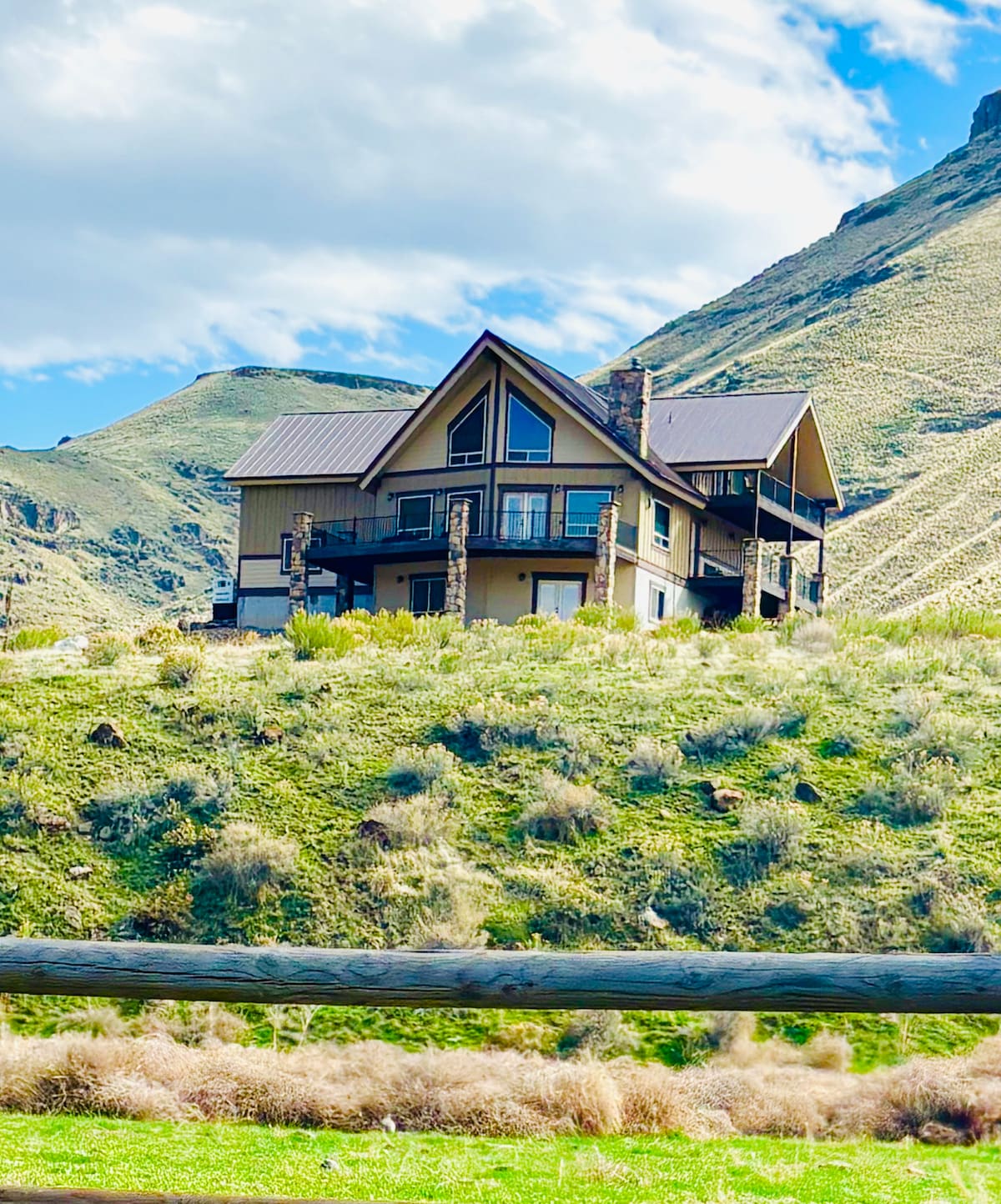 ¡Ven a relajarte a nuestra hermosa casa rancho construida para grupos grandes! Capacidad para 23 personas. Disfruta de 1/2 milla de captura de clase mundial y libera la pesca de truchas marrones en una propiedad privada frente al río. (Solo para pescadores recreativos. No se permiten guías de pesca. No cazar, armas ni perros). Estamos ubicados a 4 millas del Owyhee Lake State Park. Tres balcones espaciosos ofrecen vistas espectaculares del valle del río y las montañas.