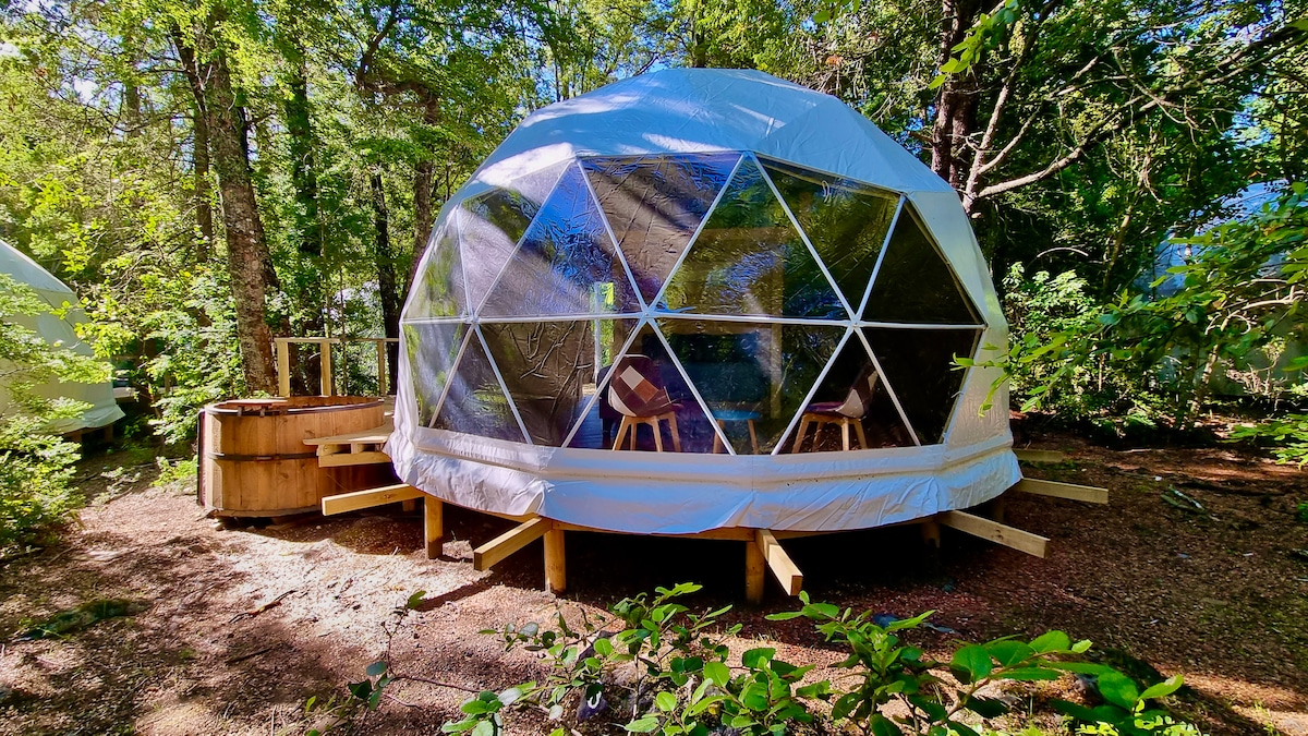 Nuestro nuevo domo para dos, tres personas ofrece una experiencia única. Despierta con una vista espectacular al bosque, rodeado de la serenidad de la naturaleza. Relájate en tu propia tinaja de uso privado, disfrutando del entorno mientras te sumerges en aguas cálidas. El domo cuenta con baño privado y una terraza exclusiva, perfecta para momentos de descanso y conexión con el entorno. Este espacio garantiza confort y privacidad, haciendo tu estancia especial.