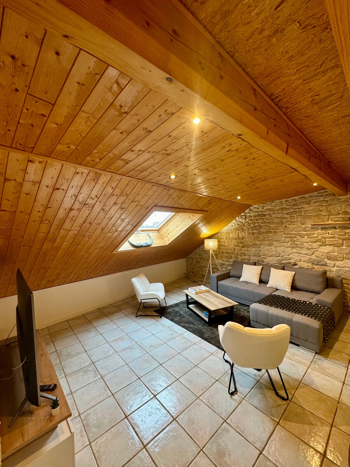 Bonito apartamento de 60 m² reformado con piedras a la vista y chimeneas del siglo XVI. Amistoso, cálido y contemporáneo a la vez con todas las comodidades modernas. Encontrará: cocina equipada abierta a un salón cómodo y espacioso con TV y Wifi. Dormitorio separado con 1 cama de 160, baño con toalla seca. Entrada, estacionamiento y terraza privados. Madera incluida.