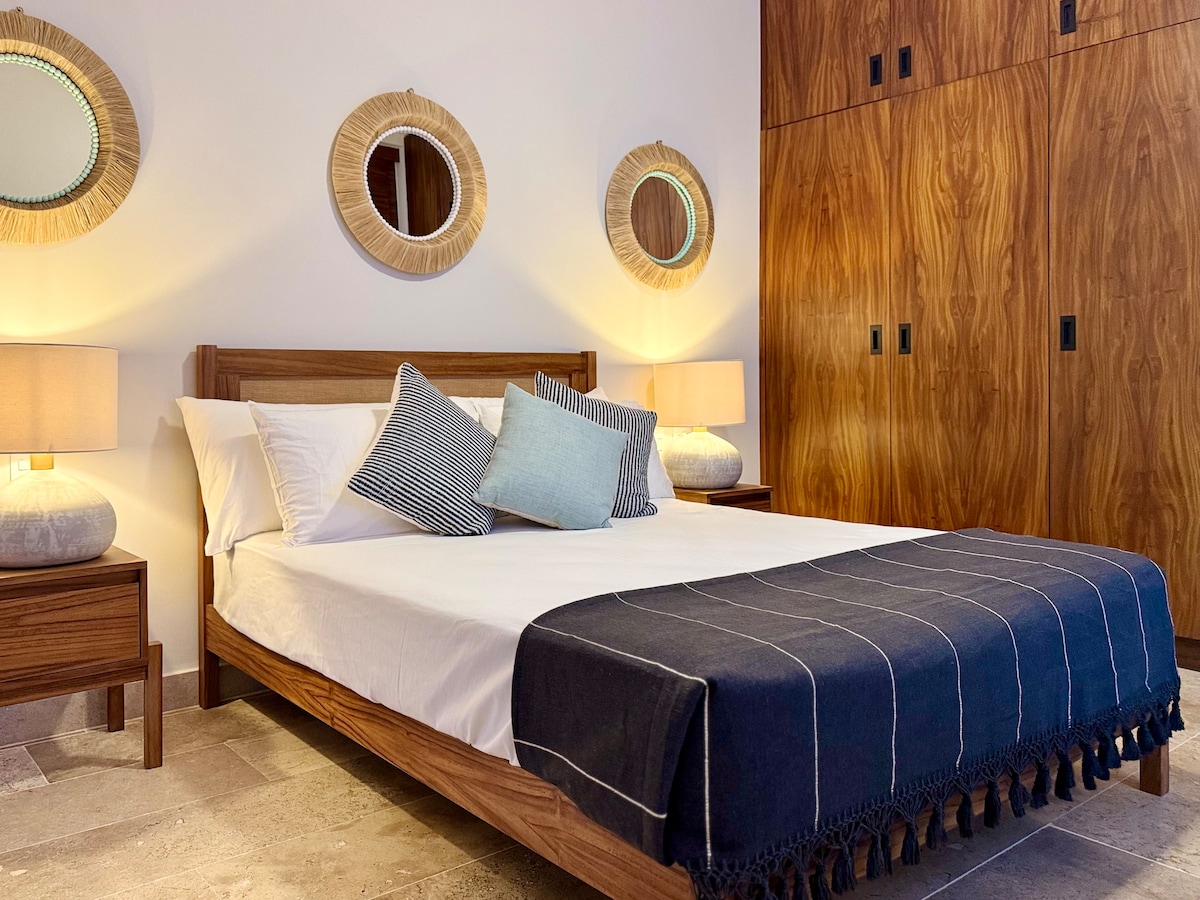 Ubicado en la calle arbolada más bonita de Playa del Carmen, con increíbles cafeterías, bares, restaurantes, tiendas locales y la playa, este apartamento único y moderno de 1 dormitorio está cerca de todo, lo que facilita la planificación de tu visita. Camina hasta la playa durante el día, pasa la noche paseando por la Quinta Avenida o simplemente disfruta de tu apartamento de inspiración náutica con terraza privada, o dirígete a tu hermosa azotea y disfruta de las espectaculares vistas del mar mientras disfrutas del bar y la piscina.