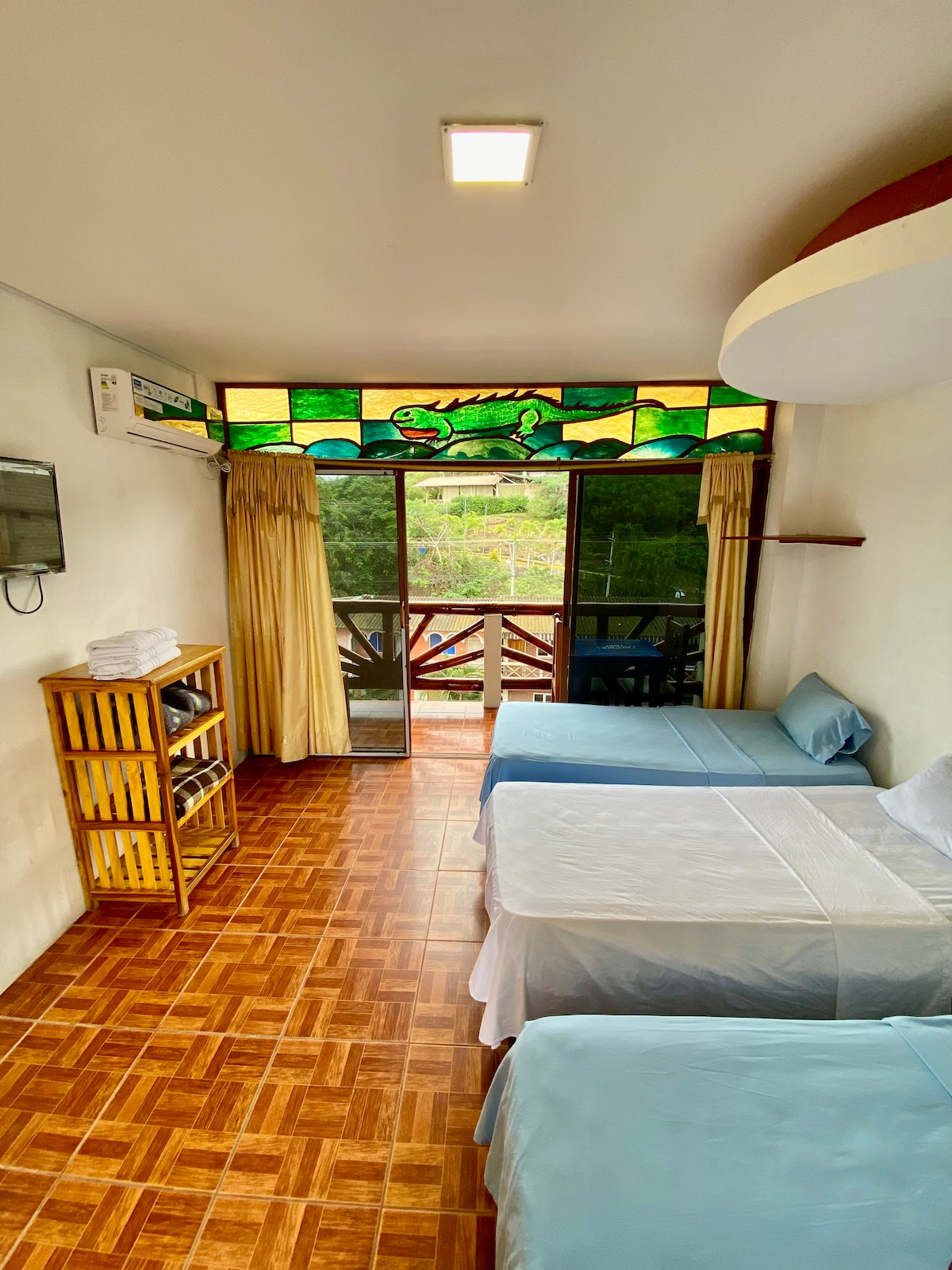 Las habitaciones están dentro del hotel La Playa Lodge, complejo que está frente al mar, ubicado a 1 km de la población de Cojimíes y 20 minutos de Pedernales. Tenemos acceso directo a la playa, las habitaciones tienen aire acondicionado, TV cable, baño privado con ducha de agua caliente. Contamos con piscina, parqueadero y restaurante. El WIFI es gratis y está en el área del restaurante, no tenemos WIFI en las habitaciones. La hora de Check in 14h00 y hora de Check out 12h00