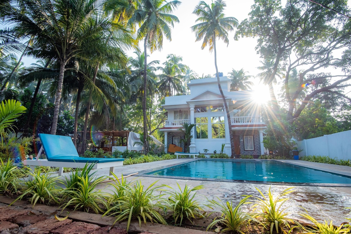 Experience tropical luxury in Morjim at this 4-bedroom, 6-bathroom villa. Relax by the sparkling private pool or unwind in the outdoor cabana with loungers. Set in a quiet, peaceful neighbourhood just a short stroll from Morjim Beach, the villa features an on-site restaurant and a 24/7 caretaker, ensuring every detail of your stay is effortless.
