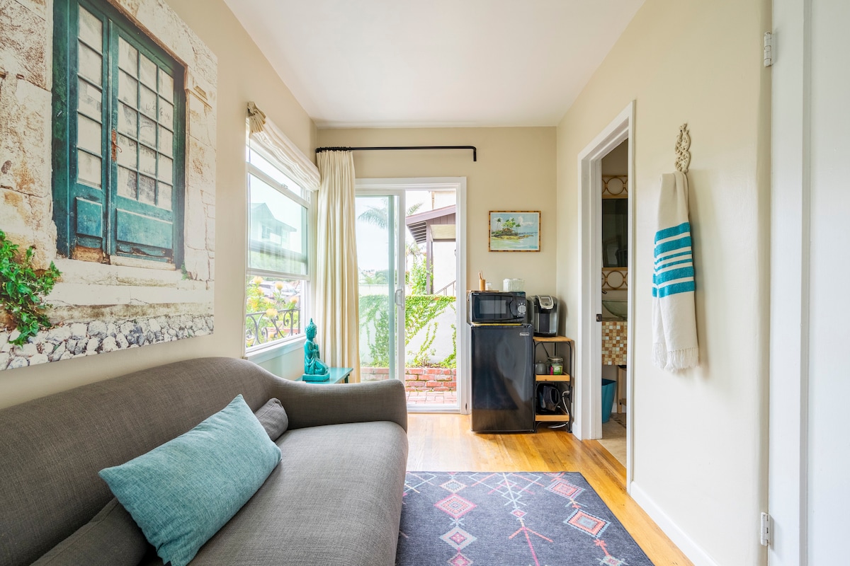 Local touches abound inside this cozy guest house. Yard is complete with seating and fire pit, relax and enjoy a glass of wine or soak away the day in the hot tub! This guesthouse is a quaint and comfortable stop for travelers looking for value and convenience in a safe neighborhood. Located close to SoFi stadium, Disneyland, Long Beach airport and LAX and with many great restaurants to choose from. The house is also just a short drive to the beach and downtown Long Beach.