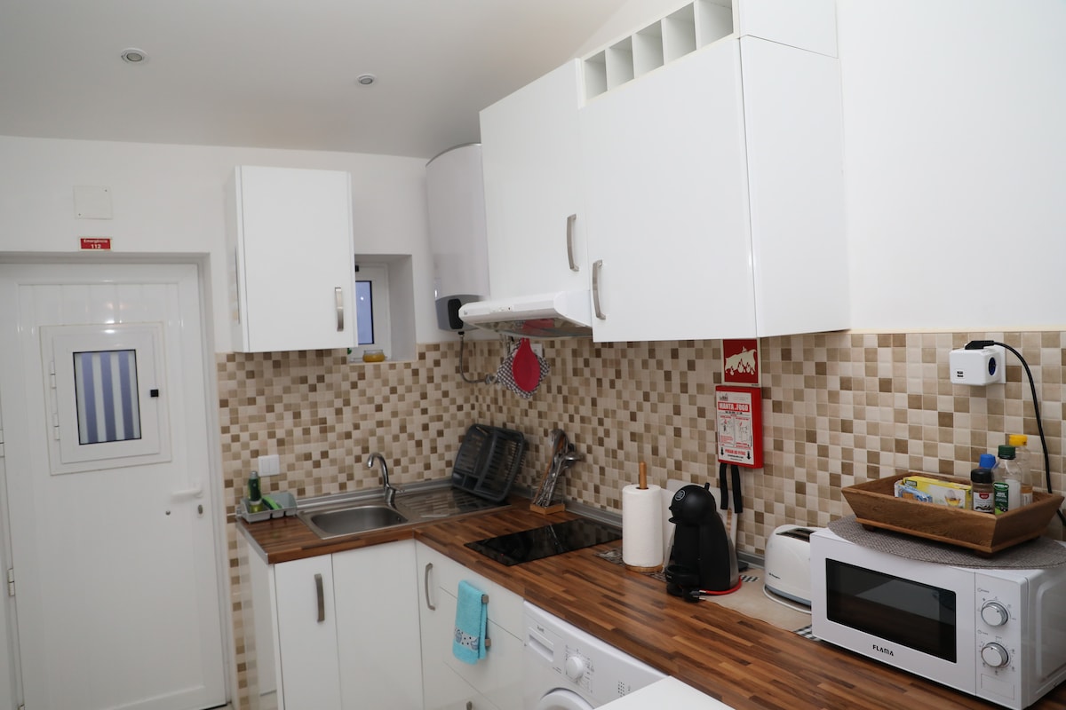 En alquiler una T1 (pequeña casa de un dormitorio) en Manta Rota, Algarve, Portugal, a cien metros de la hermosa playa de arena con tiendas locales y restaurantes y bares cerca. Esta pequeña casa ha sido renovada y cuenta con un nuevo sistema de agua caliente, lavadora, una pequeña placa para cocinar y una cafetera. Hay una pequeña zona de patio exterior para secar la ropa, etc. Solo los elementos básicos para una vida sencilla, ya que todo lo demás está a mano.