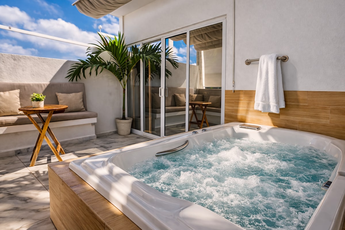 Jacuzzi privado con terraza, wifi, a/acondicionado