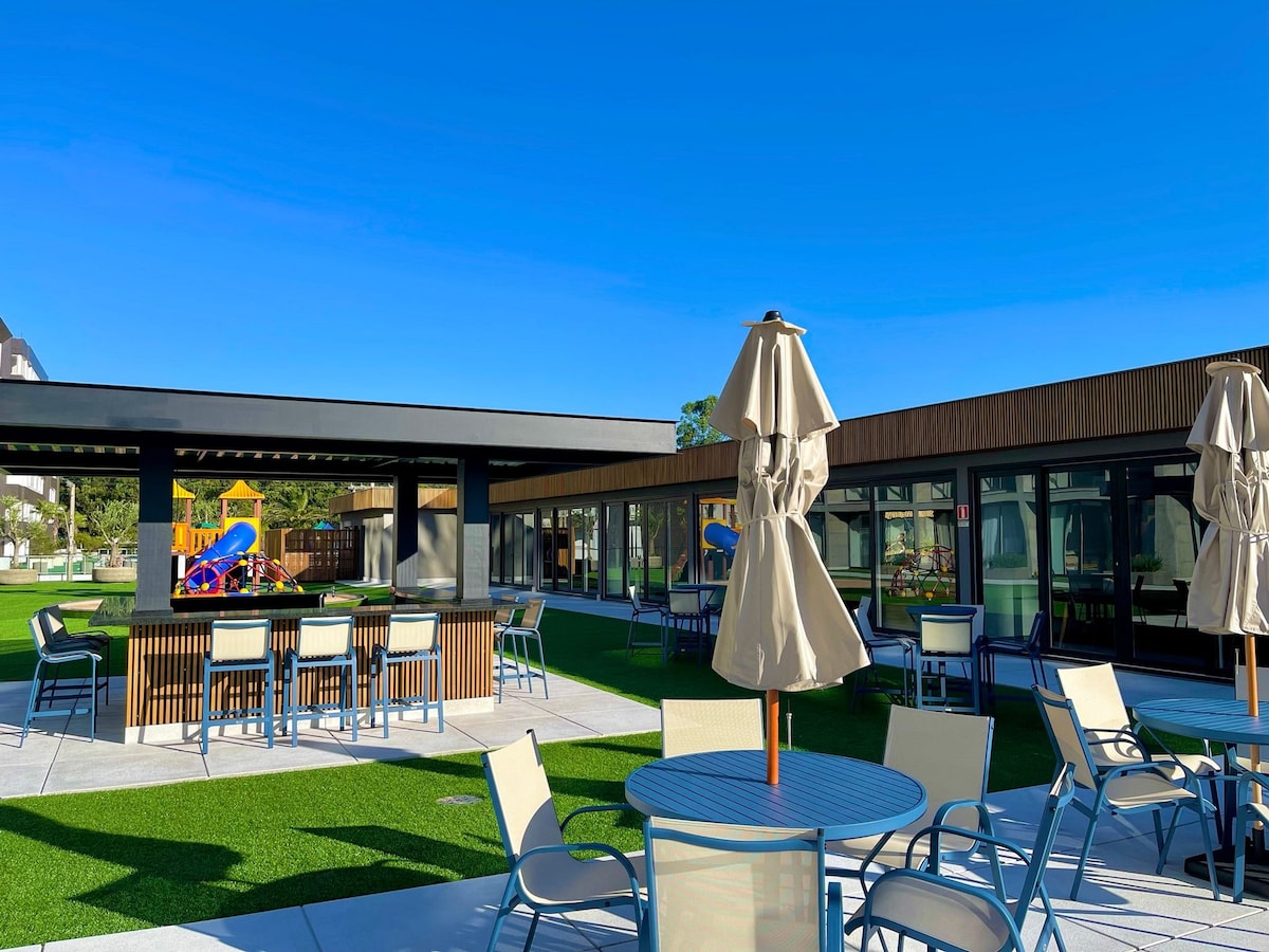 Resort con piscina térmica, academia, brinquedoteca