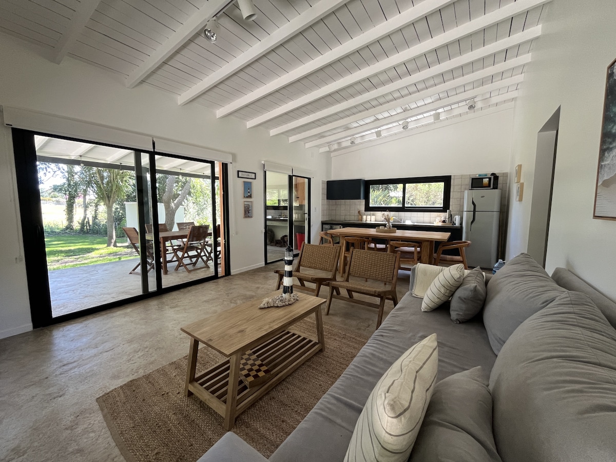 Hermosa Casa Quinta Nueva a estrenar en barrio privado de Mar Chiquita. Moderna y Luminosa Ofrece una zona de reunión con Cocina Living Comedor integrado, muy cómodo para cocinar, relajar y crear buenos momentos. Integrada al exterior por puertas ventanas que conectan con la galería y el jardín. 3 dormitorios 2 baños Con parrilla Estacionamiento A solo minutos de la playa. Capacidad para 6 personas, IDEAL PARA: - Familias, 3 Parejas, grupos hasta 6 personas - Estadías a mediano, largo plazo