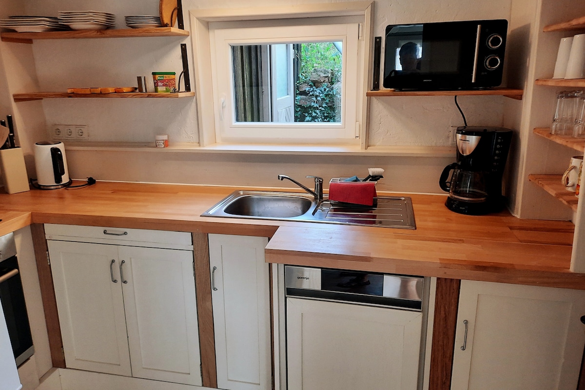 La antigua casa comunitaria recientemente renovada de principios del siglo XIX impresiona por su ambiente único. Las habitaciones son bastante bajas con una altura máxima de habitación de menos de 2 metros y muy originales debido a las paredes enyesadas de arcilla y las vigas visibles. (El pasaje más bajo es de unos 178 cm) Las habitaciones se dividen en dos plantas. En la planta baja se encuentran la sala de estar/comedor y la cocina, la habitación y el baño se encuentran en la planta superior.
