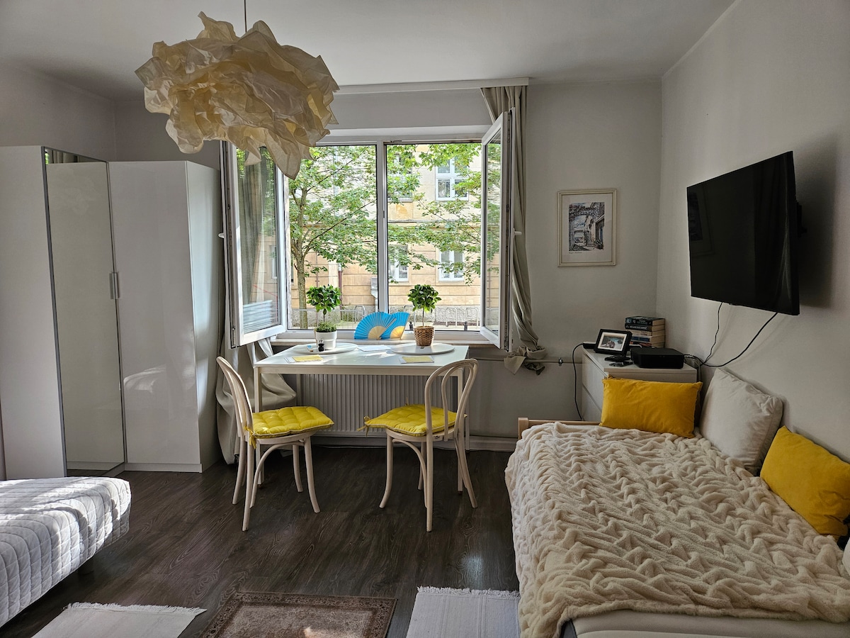 Este es un estudio con entrada independiente en una casa independiente. Esta casa está en una calle muy bonita y tranquila en la pared de las carreras de caballos. Un lugar totalmente único. El apartamento tiene un vestíbulo de entrada, habitación, baño, mini cocina, armario y una terraza. Muy cómodo para 1 - 4 personas. Hay un pago extra de 10 euros para la tercera y cuarta persona, así como para la segunda que necesita una cama separada. Para un perro, la tarifa adicional es de 20 pln por día.