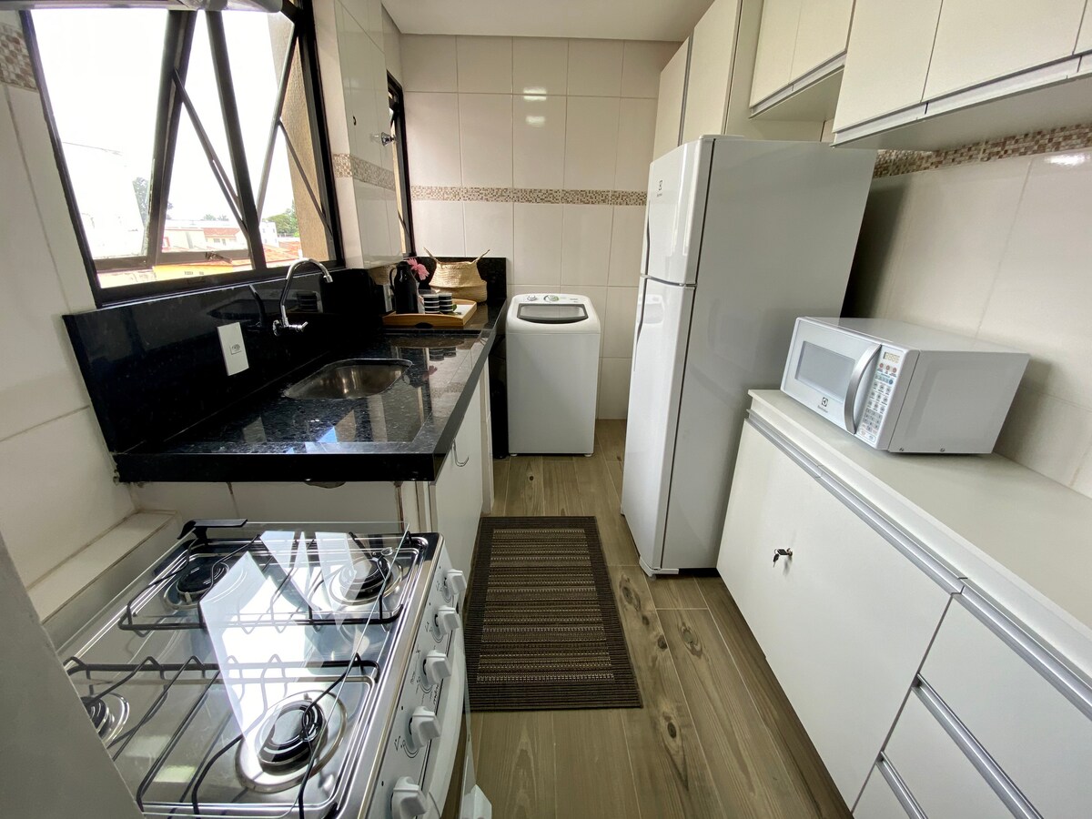 Acerca de este apartamento Cerradura electrónica, estancia corta, decorado exactamente como en las fotos, puede alojar hasta 4 personas. ¡Utensilios básicos para el hogar para que puedas cocinar, estufa, microondas, lavadora de ropa, ropa de cama, armario, TV, sofá y un vestidor! Todas las ventanas tienen mosquitero. Tiene una excelente ubicación, supermercados, seguridad 24 horas en el condominio, el apartamento está en la planta baja y tenemos un espacio para el auto dentro del condominio del apartamento, el barrio es tranquilo.